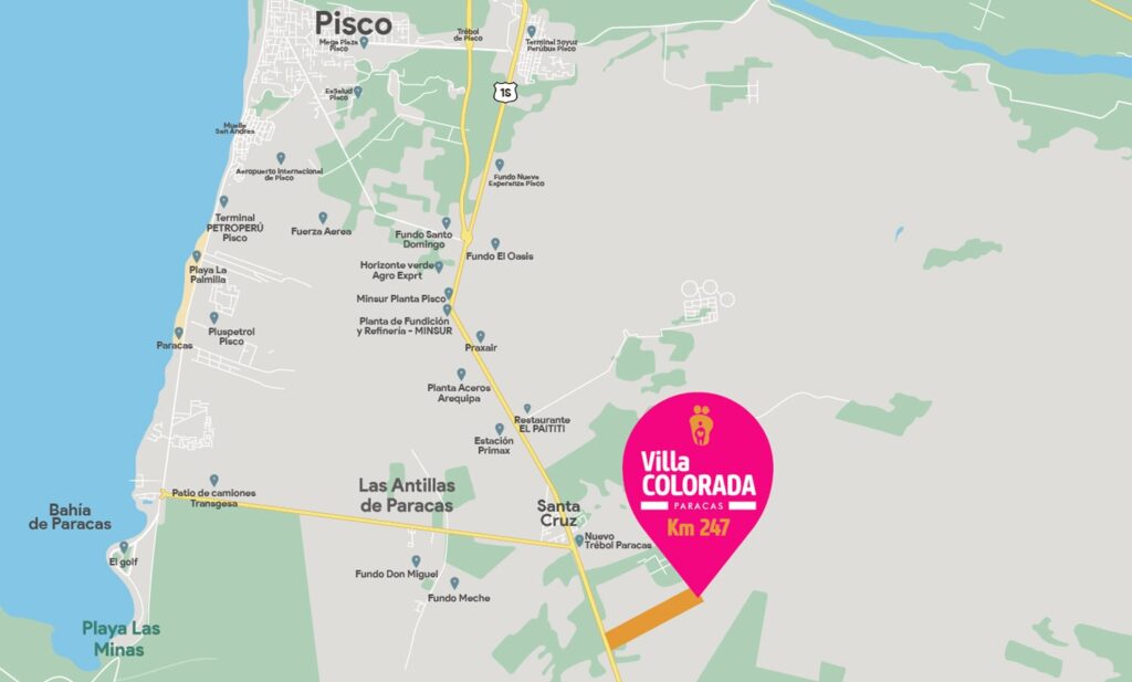 Km. 237 de la Panamericana Sur – Paracas, a unos minutos del Nuevo Trébol de Paracas